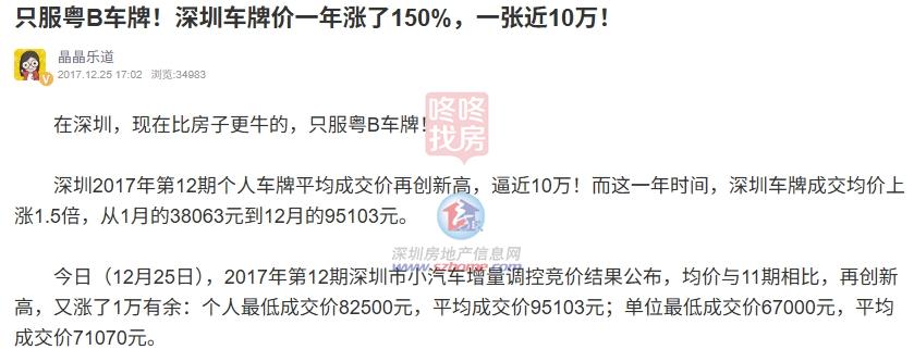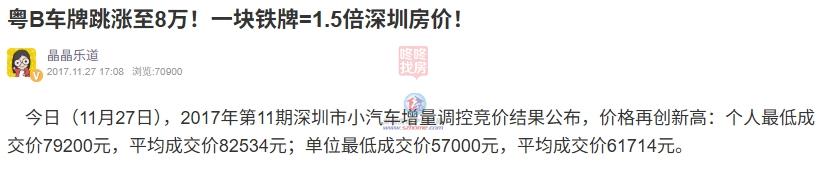 ● 2017年12月:一块粤B车牌=2.7平龙岗房=1.9平宝安房=1.3平罗湖房=1.3平福田房=1平南山房;深圳“粤B车牌”跳涨,还正在昔时投放的2万个通俗小汽车增量目标进行专项摇号,并且也持续1年时间,